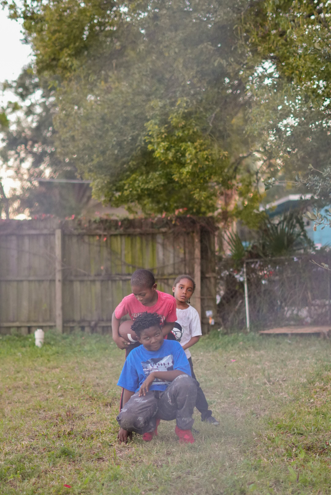 A little backstory behind these photos. So, I heard laughter and screams coming from a far to then walk a bit further to then see these little kids playing football in their backyard through the barbed wire fence while we were at CHKN + BEER Toy Drive. I introduced myself, gave a little wave and watched them play for a bit which allowed me to captured these beautiful kiddos.